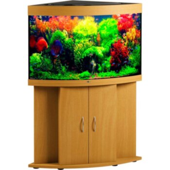 - Угловой аквариум (с передним выгнутым стеклом) выглядит оригинально и обеспечивает хороший обзор, не искажая изображение, создает эффект объема.